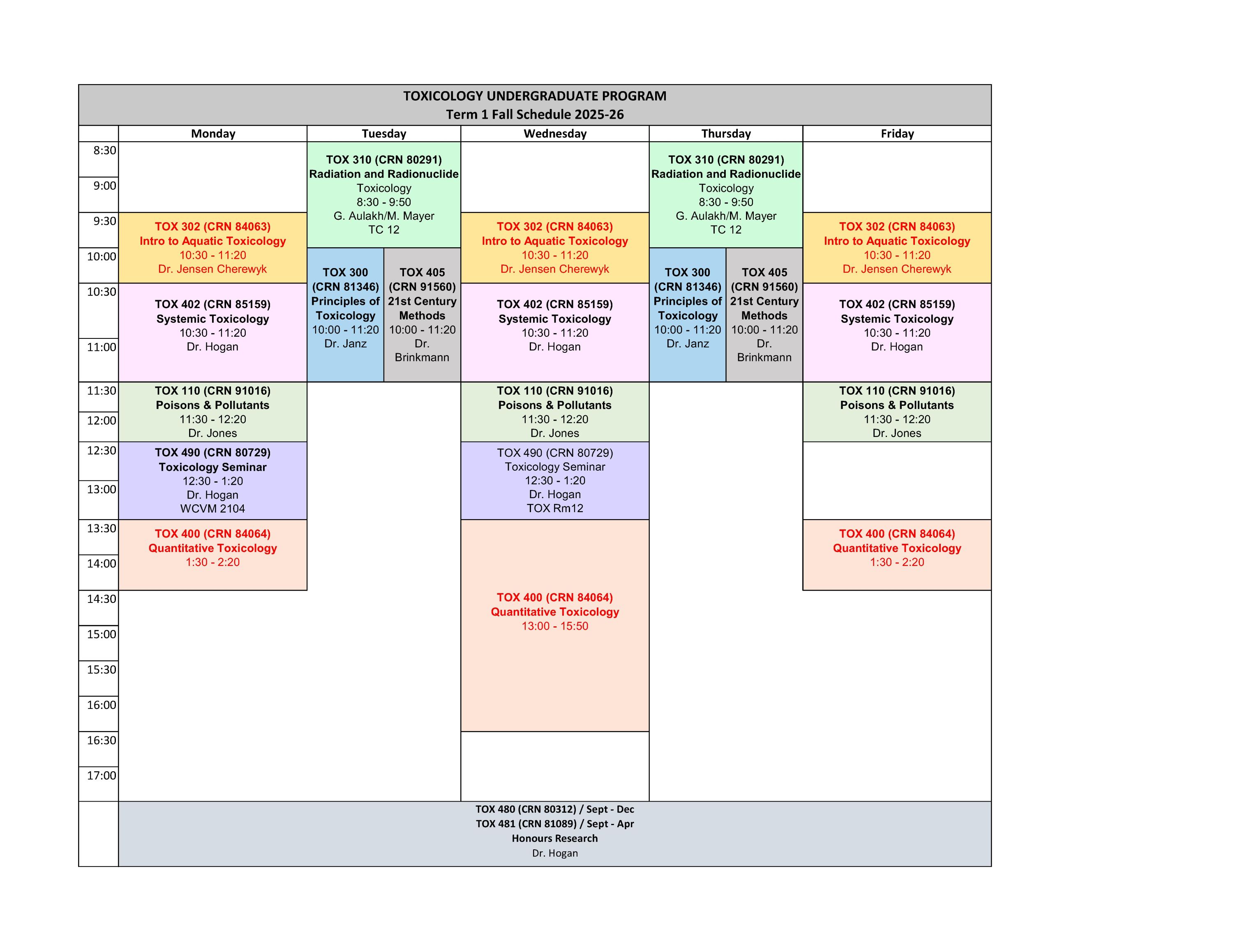 NEW LAB-BASED COURSE TOX 220 - Offered in January, 2026